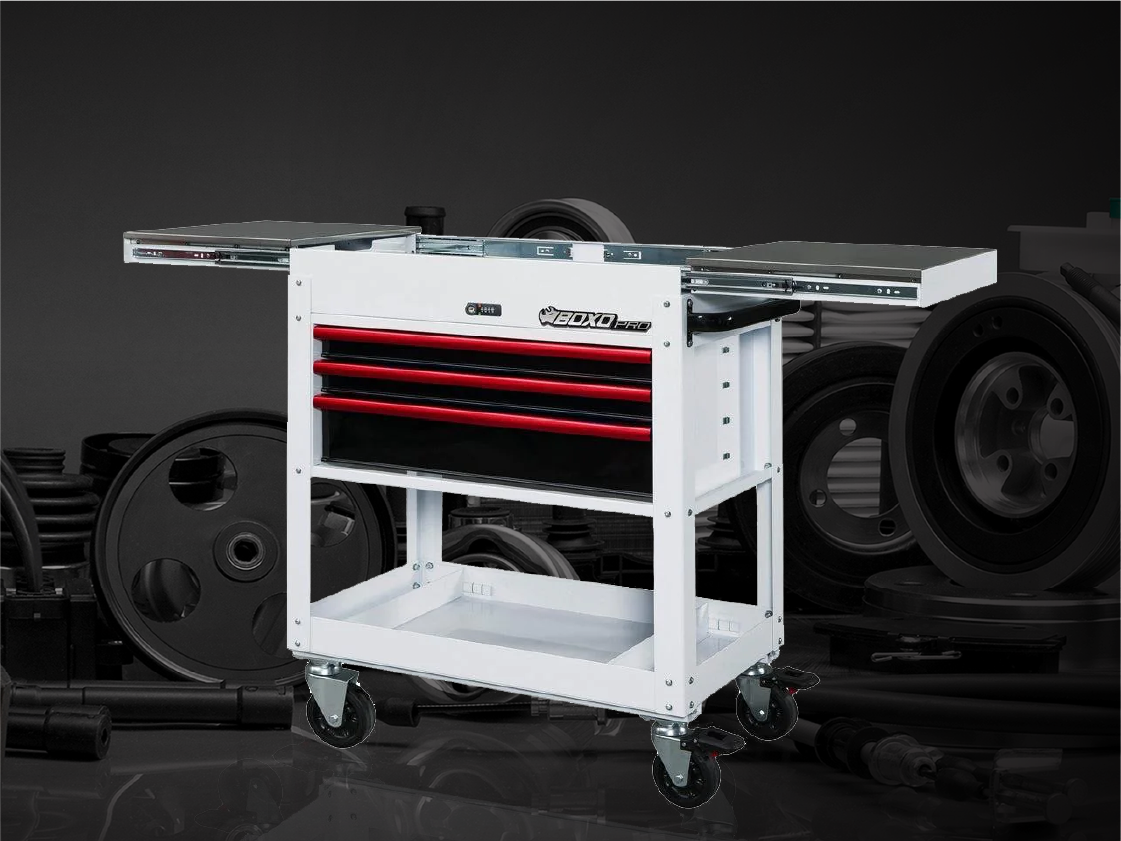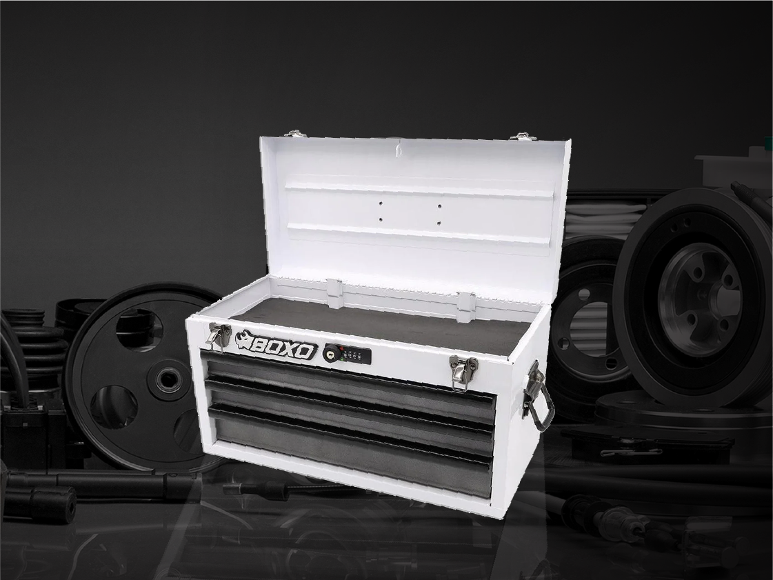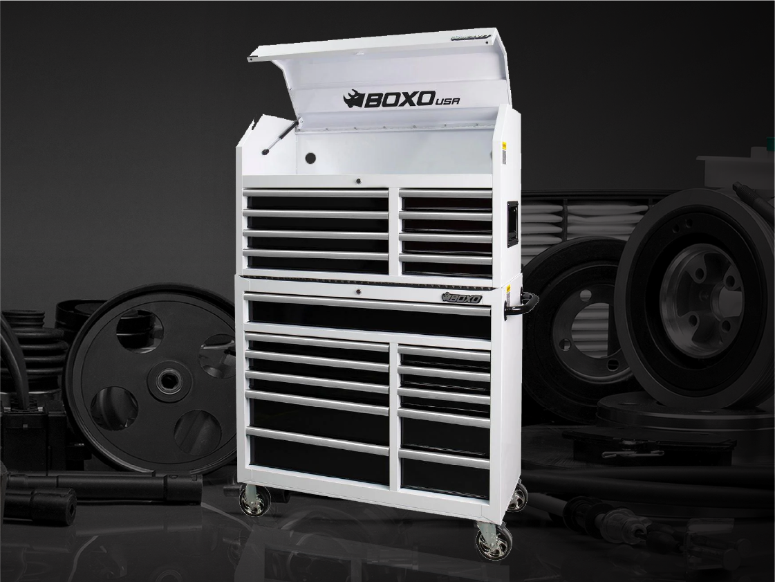 Security is paramount with a key lock and a digit-lock combination system to keep your tools safe. The tool box is finished with a rugged powder coat for superior scratch and chemical resistance, available in black, white, or Nardo grey with gray drawers and black drawer trim pull handles.